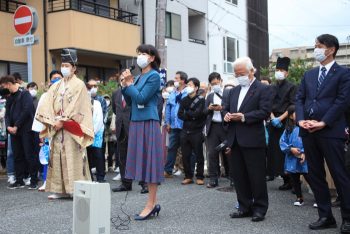あしや秋まつり協議会会長や芦屋市長の挨拶があり、いよいよお祭りの始まり。