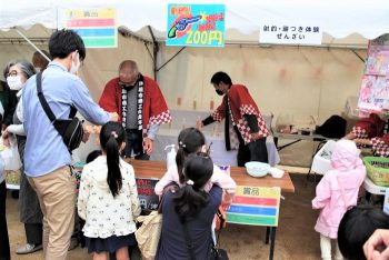 本通りから少し入った大桝公園では産直野菜の販売や射的、餅つき、芦屋のお店の美味しい飲食屋台が並びます。天気の悪くならないうちに楽しもう、と思われた方が多かったのか、こちらもたくさんの人出でにぎわっていました。