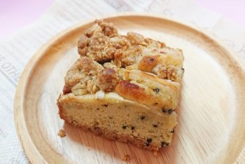 この日の「洋梨とカルダモンクランブルのトレイベイク」は中の生地はしっとり、外はほろほろと崩れるクランブルの食感や香りが良くて、スパイスが洋梨を生かしています。