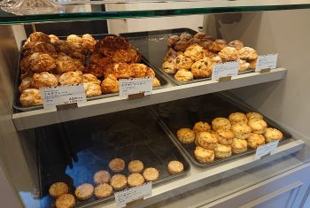 外はサクサク、中はしっとりとした食感の「モイストスコーン」、生クリームをたっぷり加えたサクサク生地の「クッキースコーン」、全粒粉を使用し、甘さ控えめでおつまみとしても楽しめる「ガレットスコーン」の3タイプです。