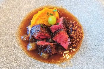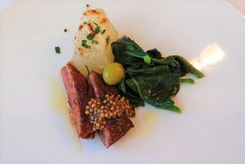 お肉料理は「ハンガリー産鴨のスパイス焼き」。追加料金で「黒毛和牛のステーキ」に変更もできます。