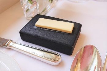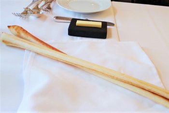 石のような材質のバター皿が溶けにくくて、ほしくなります。おかわりもできるパンはグリッシーニ。