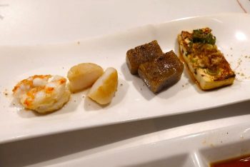 その次は豆腐、こんにゃく、海鮮のステーキです。