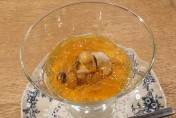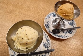この日のデザートのアイスクリームはサッパリしたゴールデンキウイとヨーグルトのソルベ・キャラメルアイスから選べました。ドリンクまでいただいて、ゆったりした時間を過ごせました。