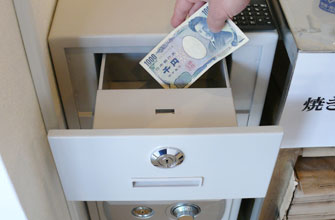 お支払いBOX の引出しに、料金を投入します。
