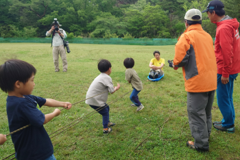 次は山岳ガイドのナチュラルスタイルから子どもでもパパやママを運べる!ロープワークです。大人が動けない時に、木や柱にロープをかけると、なんと子供でも引っ張って動かせるんです。