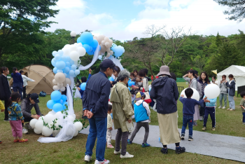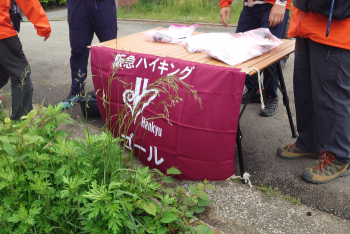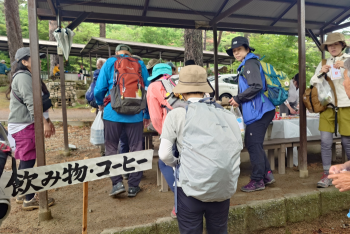 会場は芦屋市の有料道路を通っていく高級住宅地、奥池にあるBBQ場「奥池あそびの広場」です。会場への送迎バスの他に、芦屋登山会の先導で登ってこられる方もたくさん。阪急ハイキングも同時開催で、毎年配布されている缶バッジが配布されています。