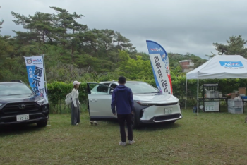 右はトヨタの車の展示です。停電した時、車の電気を使うことができます。キャンプにもよさそうですね。