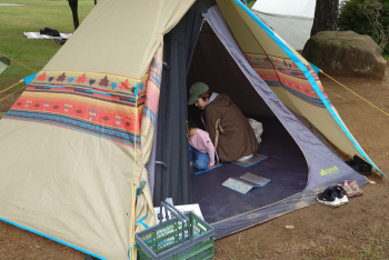 「森の図書館」はインディアン風テントで本を読めて、読み聞かせの時間もあって、こちらも大賑わいでした。