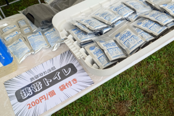 簡易トイレの展示もありました。アウトドアグッズは災害時に役に立ちますね。