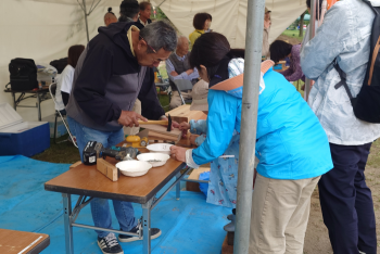 午前中は雨が時々降る中でしたが、たくさんの親子連れとハイカーがイベントや食べ物を楽しんでいました。