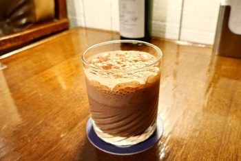 ウイスキーはジャパニーズを、アイスコーヒーとアイスココアもいただきました。コーヒーは香りを引き立てるワイングラスで提供され、ちょっと特別な気分に。