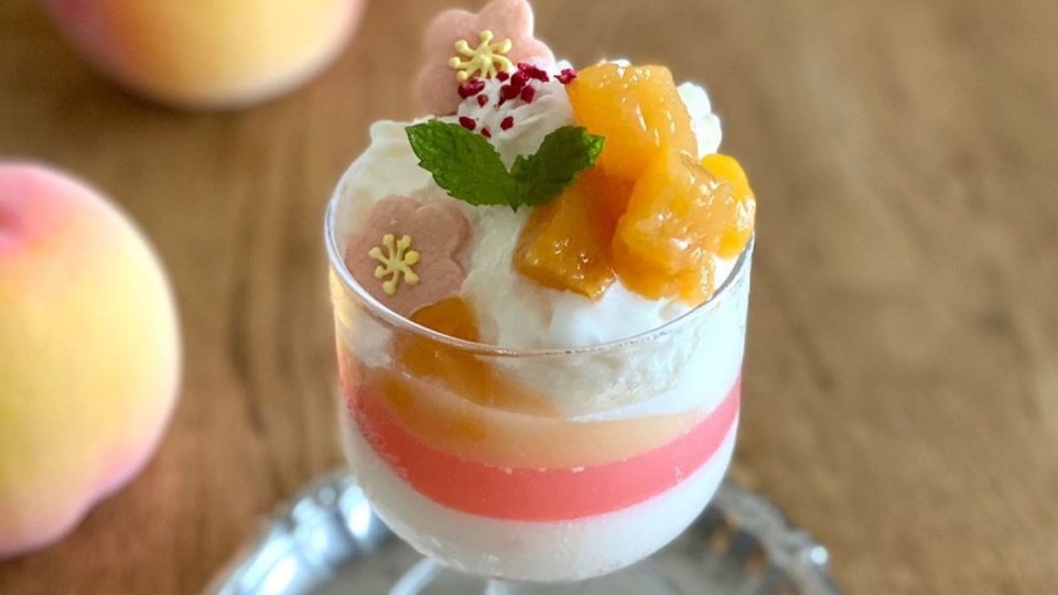 透明度の高い六甲山の湧き水を汲み上げて、鉢栽培をした桃が旬!